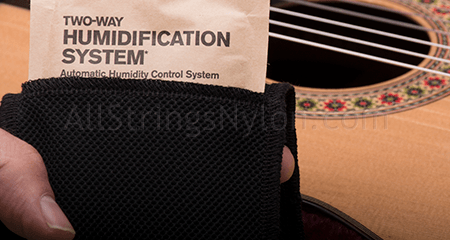 A third type of humidifier is the two-way no-refill, essentially waterless humidifier. It uses a semi-permeable pack filled with a water and salt gum-like material that either releases or absorbs moisture, as needed. This system automatically maintains the optimal 45-50% RH level within your instrument case, eliminating the guesswork and potential mess related to refilling your humidifier with water. There is also no danger of water damage because no free flowing water is involved as the moisture is locked in the gum-like material in the enclosed packet. All you need to do is pop one in the soft mesh pouch that comes as part of the system. There is no need to be concerned with factors such as seasonal changes or temperature or geographic location, just let the laws of physics do their work. This is by far the most trouble-free and reliable means of protecting your instrument.